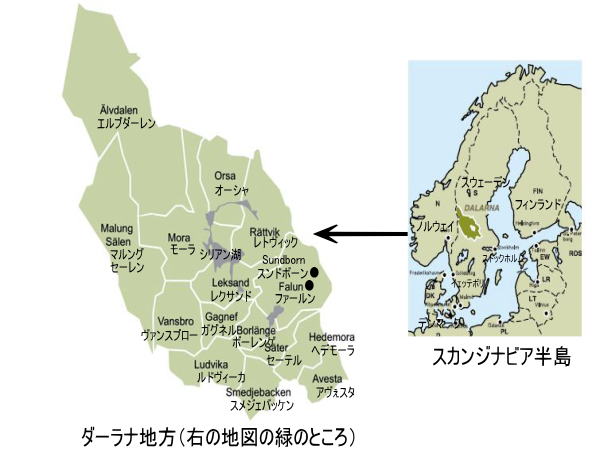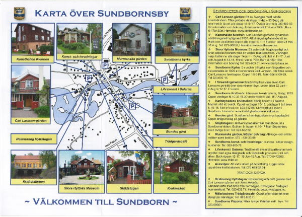| カール・ラーションの時代そのままのスンドボーン村地図 (上の地図の中でクリックすると大きい地図が見られます) Sundborn村について詳しい情報は下記のリンク先よりご覧ください。 www.sundborn.com |