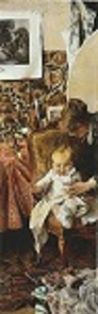ところが敢え無く落選してしまい、腹を立てたカールは切り刻んでしまい、残った部分に新妻カーリンと生後間もない長女スサンヌを描き加えました。