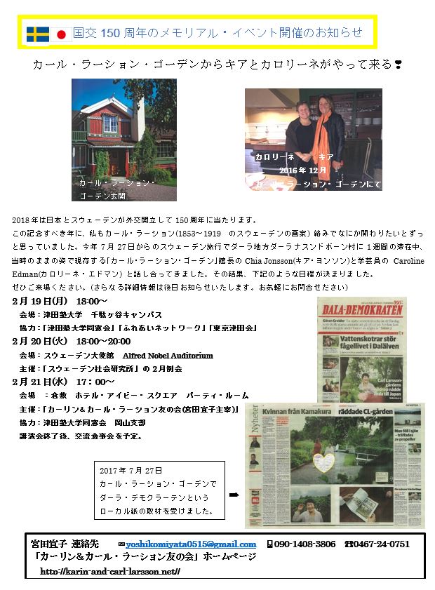 2017年の記事 150周年記念講演会お知らせ・ Resan till Sverige