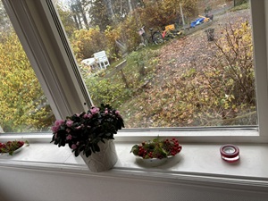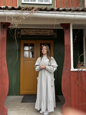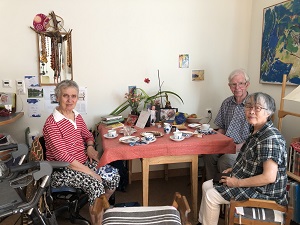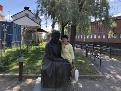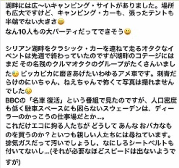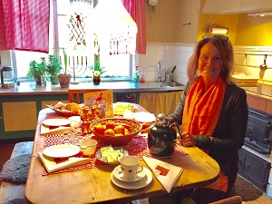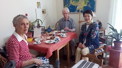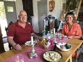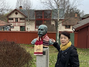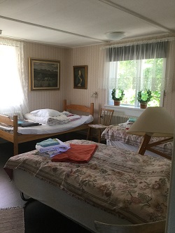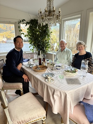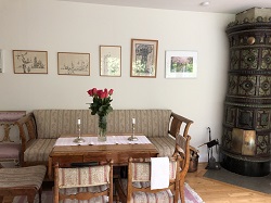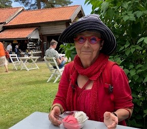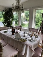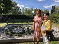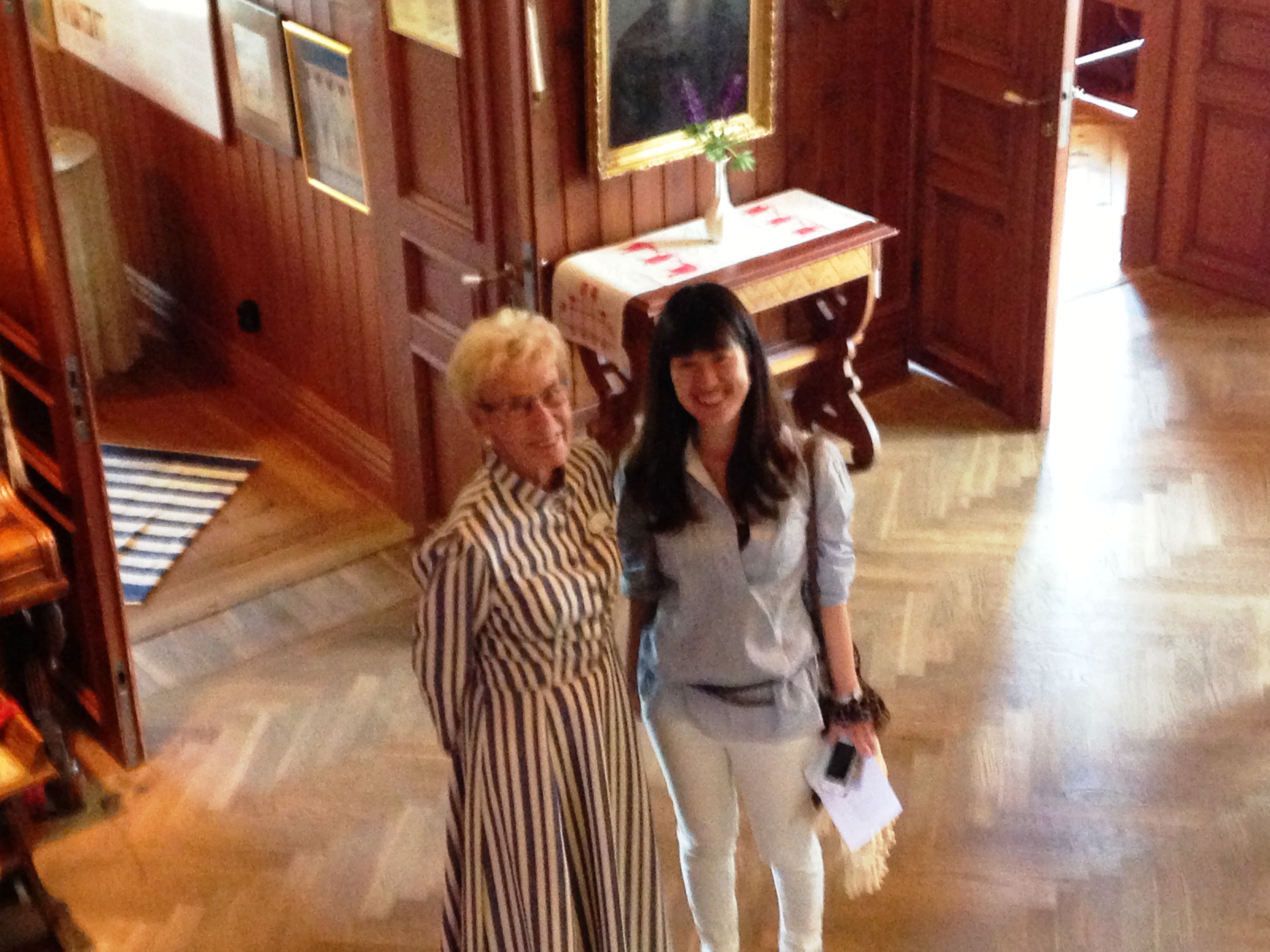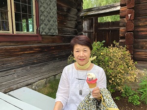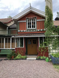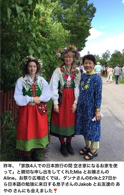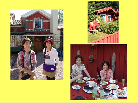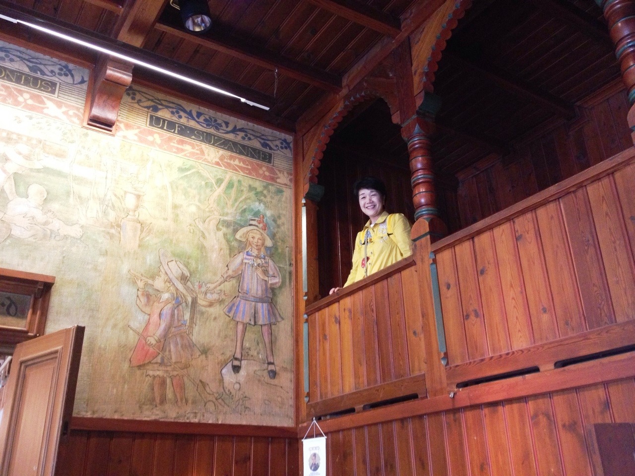 私とスウェーデンとのご縁は1993年から約1年間、二男がAFSの留学生として滞在したことから始まりました。1998年の最初のスウェーデン旅行は息子にお任せで後ろをついて歩くだけでしたが、たちまち大好きになったスウェーデンの人たちの言語でおしゃべりできるようになりたい! と考えるようになり帰国後スウェーデン語を習い始めました。その後、夫の闘病生活中を除いた2006年からはほぼ毎年1~2回行くようになりましたが、2008年には、二男のホスト・ペアレンツが3人でダーラナ地方を巡る3泊のドライブ旅行に連れて行ってくださり、憧れのカール・ラーショ・ゴーデン訪問もかないました。その時ミュジアム・ショップで買ったカール・ラーション・ゴーデンが舞台になっている「Resan till Carl Larsson⁻Gården カール・ラーション・ゴーデンを訪ねて」という絵本の翻訳を帰国後始めました。再度現地で確認しなければわからないことがたくさん出てきて、2010年9月に二男のホスト・マザーが車で連れて行ってくれました。この旅に出る前に全くの偶然でラーションのお孫さん(四女シェスティの三女)のカーリンさんを紹介され、恐る恐る出してみた手紙に「私は、おじいさんと同じく日本も日本人も大好きなのよ! スウェーデンに滞在中に何回でも会いましょう!」という思いがけない返事をいただき、その後現在に至るまで親しくお付き合いをする仲になりました。またカーリンさんからは、従兄でSundborn在住のラーシュ・ヒュッテさんも紹介され、絵本の中の登場人物とそっくり同じに館内の案内をしてもらいました。二男のホスト・ペアレンツからは「スウェーデン人でもカール・ラーションの孫と友達になんかなれるもんじゃないよ!」とうらやましがられています。