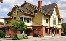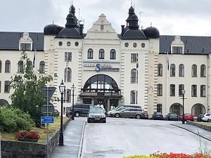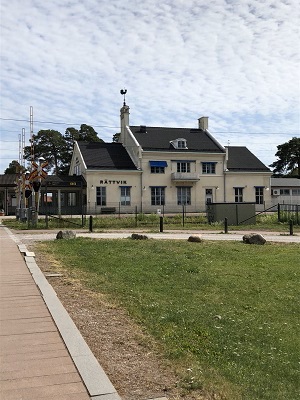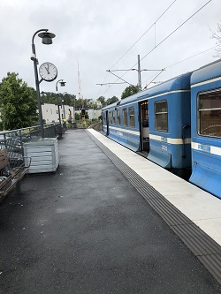 1800年代にスウェーデンの大富豪Wallenberg家の主導で「スウェーデンにモンテカルロを作ろう!」というコンセプトのもとにオテル・ド・パリからインスピレーションを受け設計した建築家のエリック・ヨゼフソンがコンペを勝ち抜きお城のような建物が造られました。このホテルに来るお客のためにストックホルムのSlussen駅からひいたSaltsjöbananで約20分乗った終点Saltsjöbaden駅が左の写真です。ご覧のように無人駅です。