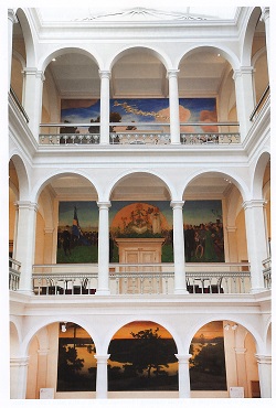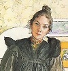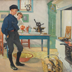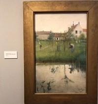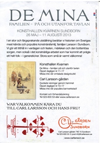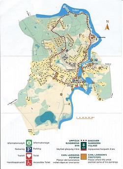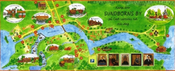 「スウェーデンで最も愛されている画家」という言葉が必ず名前の前に付く Carl Larssonは、1853年にストックホルムの貧しい家庭で生まれました。苦学しながらも、フランス留学中に身につけた独特な淡い色合いの水彩画で、自らの家族や住まいを描いたたくさんの絵は今も世界中で親しまれています。その絵を裏付ける家が、造られてから200年近くたった今も、絵の中の世界そのままにダーラナ地方スンドボーン村に残されています。今では200人を超えるラーションの遺族会が運営する「カール・ラーション・ゴーデン(通称リラ・ヒュットネース)」は見学ツアーと企画展示とミュジアム・ショップの売り上げだけを収入源とする自立心に富んだ文化施設です。スンドボ-ンは大画家カールが世捨て人のように都会を離れて定住したことが納得できるような限りなく静かで美しい村です。自身も芸術家であった妻のカーリンが、子ども7人の大所帯の主婦業も立派にこなしながら、その芸術的才能をいかんなく発揮した家具や刺繍、織物なども保存されており、北欧インテリアのお手本として今も古びることなく残っています。カーリンはまた裁縫、料理、庭造りなどの名人でもありました。堅苦しい常識や偏見にとらわれない自由な発想のできるすばらしい女性であったと思われます。