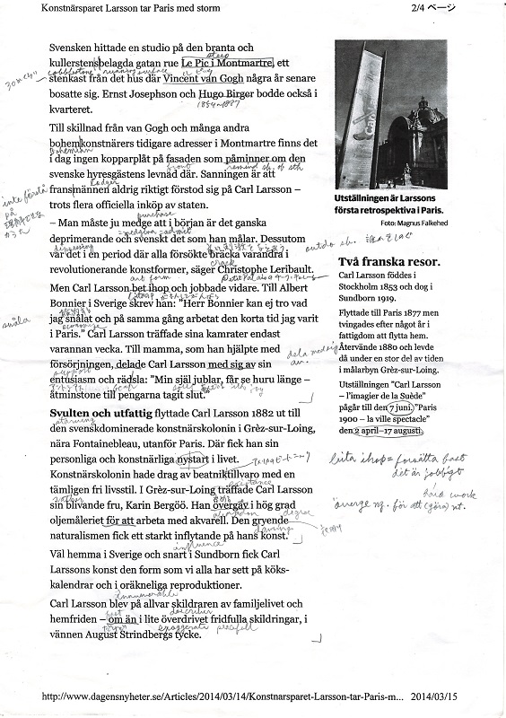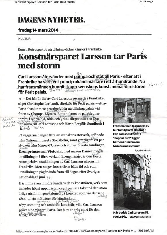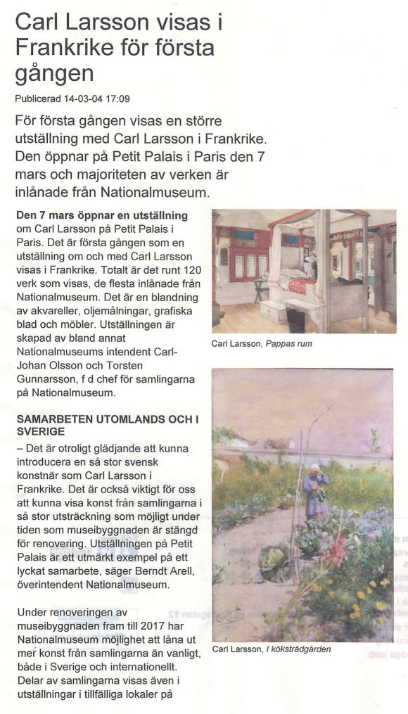 スウェーデンの新聞 Dagens Nyheter の文化面の記事に、カール・ラーションが暮らしていたことのあるモンマルトルのrue Le Pic