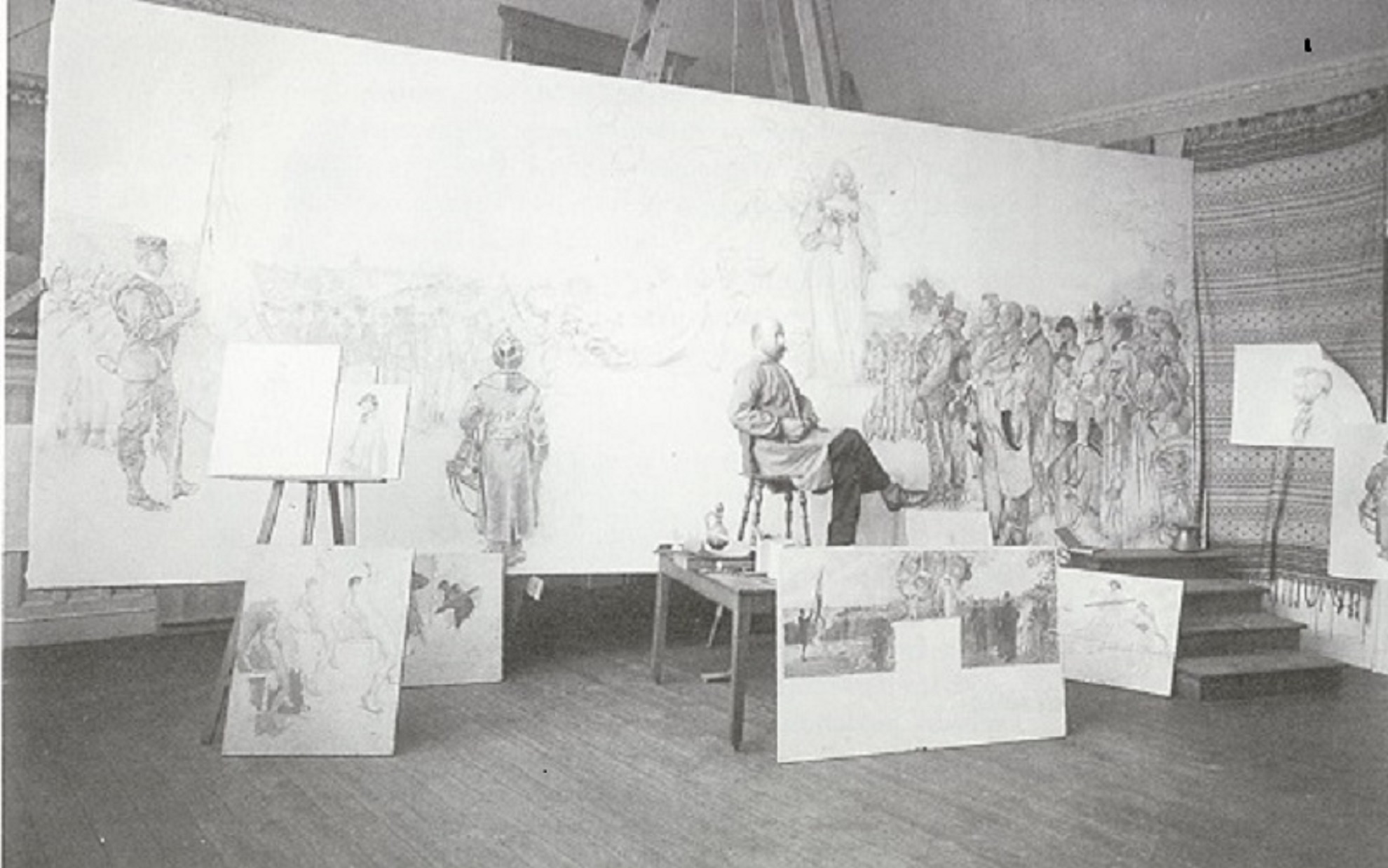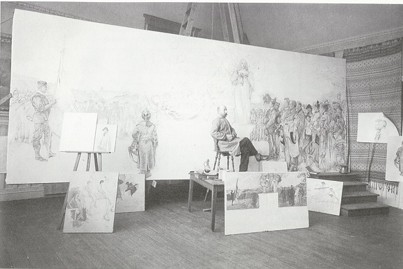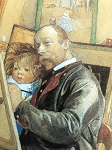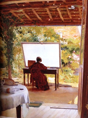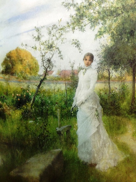 左側の絵はカール・ラーションと同時代にグレーに滞在していた William Blair Bruce という画家が1882年に描いた、制作中のKarin