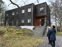 「スウェーデンで最も愛されている画家」という言葉が必ず名前の前に付く Carl Larssonは、1853年にストックホルムの貧しい家庭で生まれました。苦学しながらも、フランス留学中に身につけた独特な淡い色合いの水彩画で、自らの家族や住まいを描いたたくさんの絵は今も世界中で親しまれています。その絵を裏付ける家が、造られてから200年近くたった今も、絵の中の世界そのままにダーラナ地方スンドボーン村に残されています。今では200人を超えるラーションの遺族会が運営する「カール・ラーション・ゴーデン(通称リラ・ヒュットネース)」は見学ツアーと企画展示とミュジアム・ショップの売り上げだけを収入源とする自立心に富んだ文化施設です。スンドボ-ンは大画家カールが世捨て人のように都会を離れて定住したことが納得できるような限りなく静かで美しい村です。自身も芸術家であった妻のカーリンが、子ども7人の大所帯の主婦業も立派にこなしながら、その芸術的才能をいかんなく発揮した家具や刺繍、織物なども保存されており、北欧インテリアのお手本として今も古びることなく残っています。カーリンはまた裁縫、料理、庭造りなどの名人でもありました。堅苦しい常識や偏見にとらわれない自由な発想のできるすばらしい女性であったと思われます。